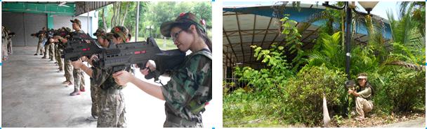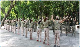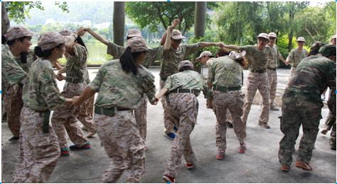 半小时的车程已洒下一路的欢声笑语。虽还没到达目的地,大家却已在心里畅想作战计划。板芙鹿鸣湖野战俱乐部终于到达了,看!大家在野战基地教官的带领下换上了迷彩服。真所谓英姿飒爽!!!