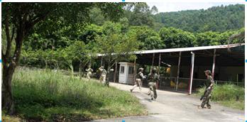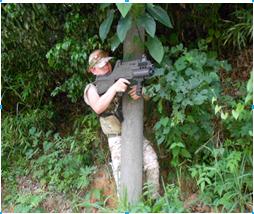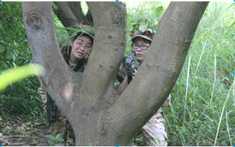 激战中——队员们纷纷利用身边的草木进行掩护,静静地等待“敌军”的到来。