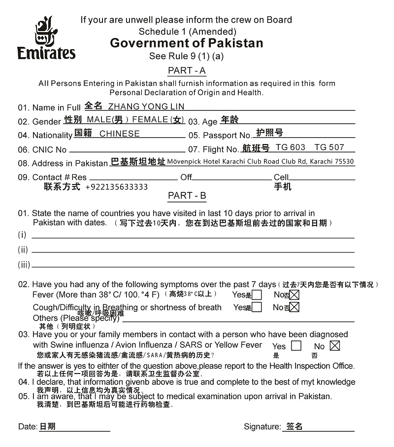 1、巴基斯坦入境需填写入境卡(入境卡在飞机上由空姐发给旅客来填写),出境则不用填写。