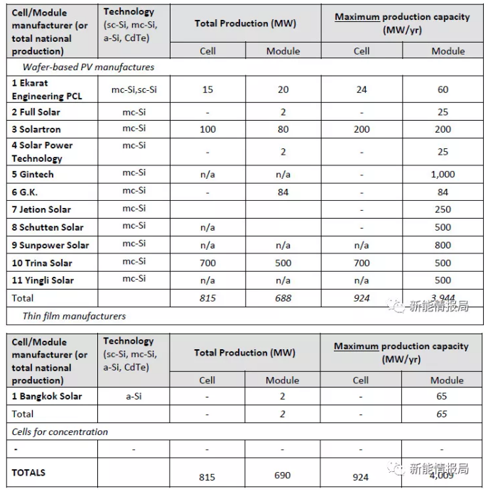 根据IEA的数据,2017年,泰国拥有15家组件制造企业,年产能为5GW,组件产品主要用来出口。
