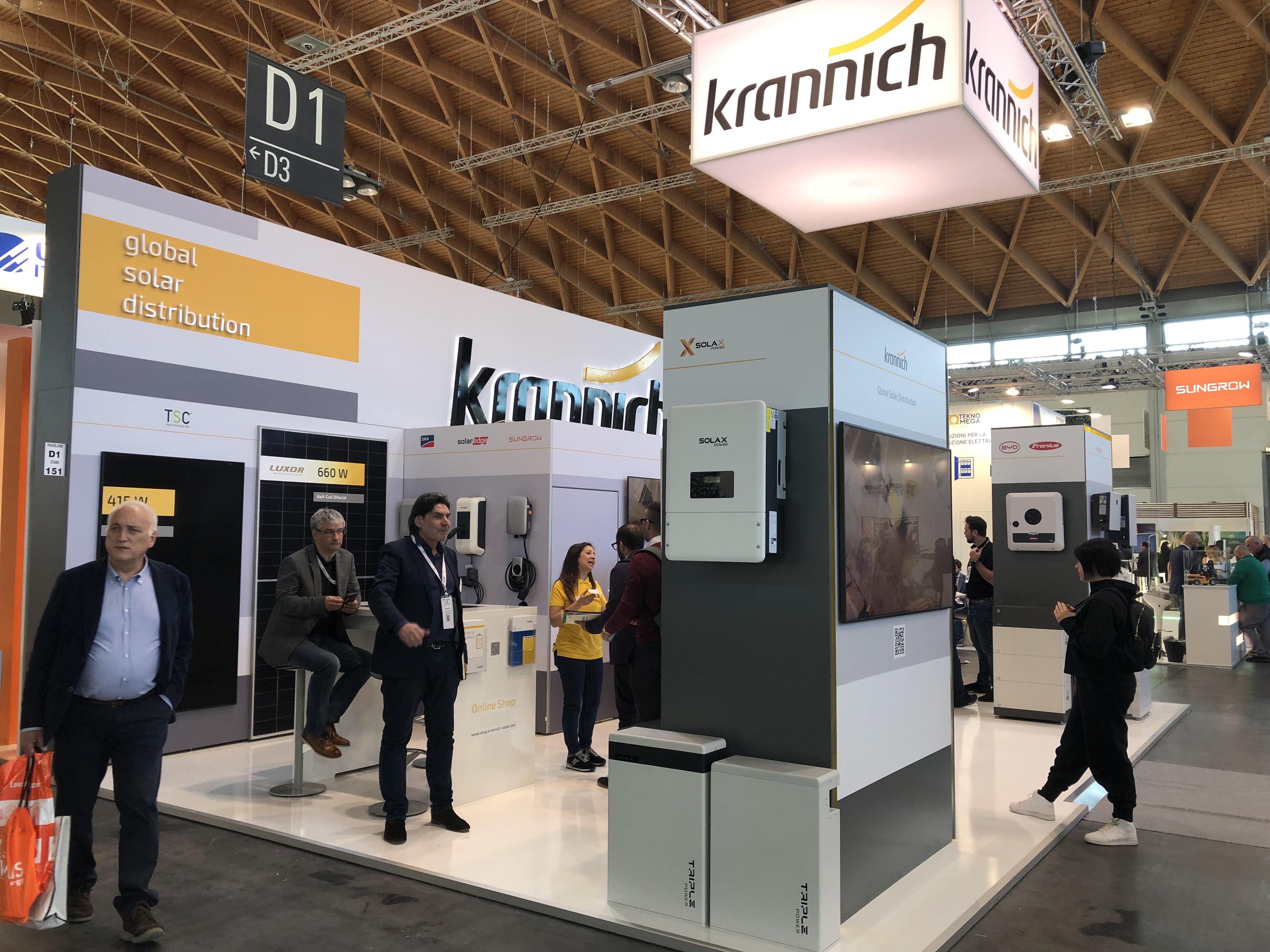 展馆现场D1-D7为光伏板、逆变器、储能电池专业馆,欧洲光伏协会组织欧洲各大光伏巨头悉数出场,展会现场还组织了各种活动,吸引欧洲客商参与互动。华为,正泰,固德威,古瑞瓦特,通威,海尔,德业,大烨,隆基,晶科,麦田,艾罗,三晶,星恒,纳通,大恒,欣旺达,骆驼,中清,中润,力高,科士达,阿特斯,英威腾,LG,西门子,ABB等知名中国企业也纷纷登台亮相!