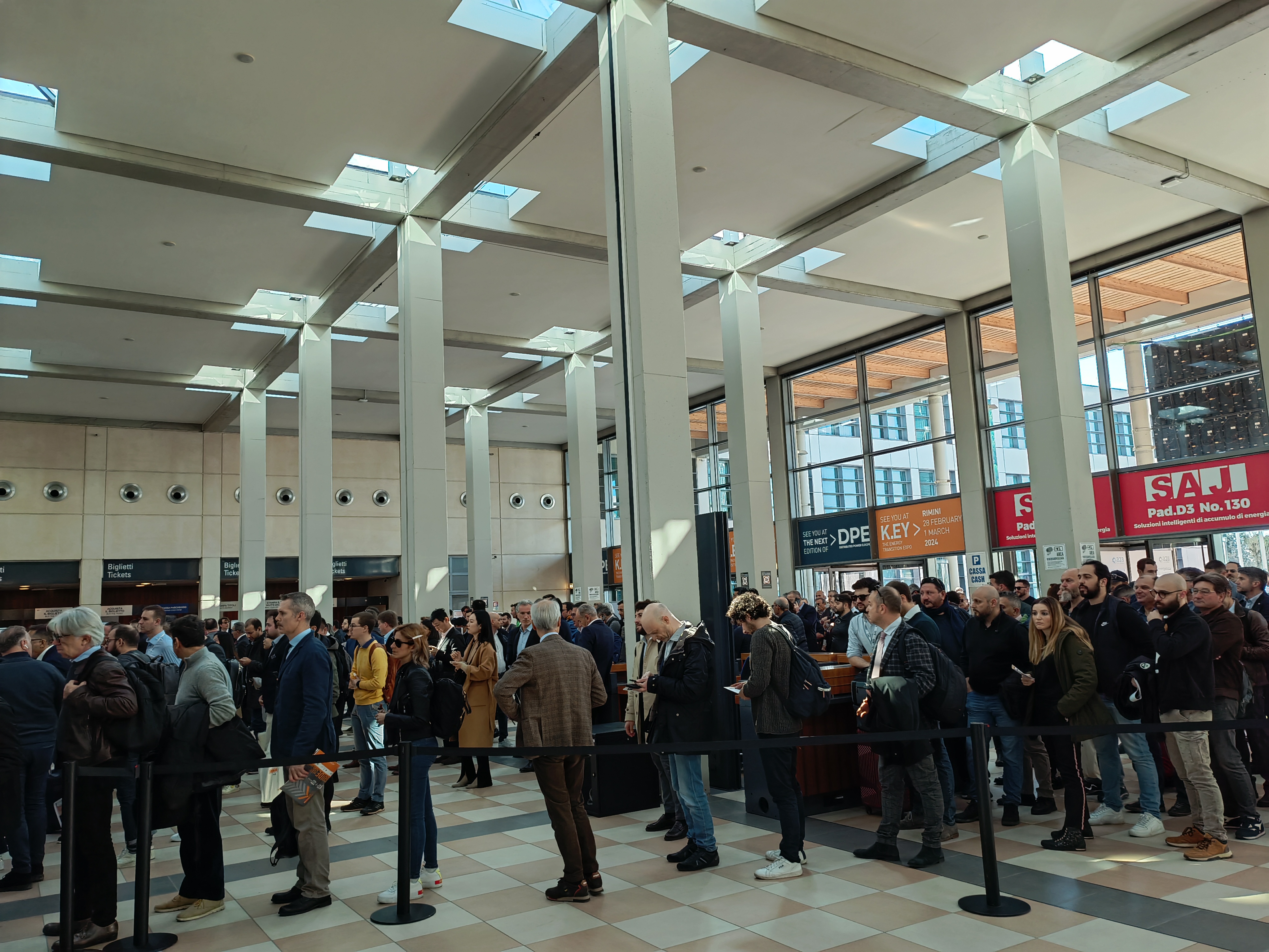 为了让更多的欧洲采购商以及新能源行业从业者来现场参观,主办方在博洛尼亚机场设立了可以直达展馆的免费巴士,火车也临时增加了展览馆的停靠站,同时还在德国、法国、西班牙、荷兰、比利时、波兰、希腊、匈牙利、挪威、芬兰、土耳其等国家组团,邀请相关行业人士去参观,并且免费提供机票酒店等。得益于主办方周密的安排和贴心的服务,展会开幕当天上午10:00人流量“爆棚”!